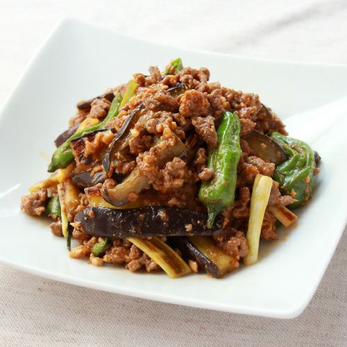 ①予め一緒に入れるナスやピーマンは炒めて別のお皿に取っておきます。