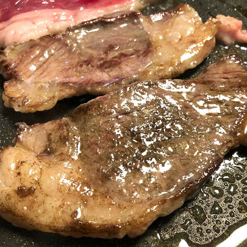 ◎塩コショーして、牛肉のようにサッと焼いてください。