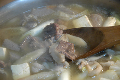 猪肉は雪深い郡上の冬の貴重なタンパク源であり、どの家も凍った漬物や保存のきくネギなどといっしょに猪肉を自家製の味噌で煮て食べていました。これを「煮味噌」と呼んでいたそうです。