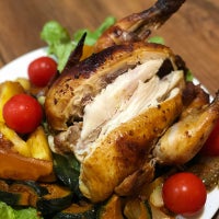 本格BBQグリルでの調理をしてみました。 すでに味付けが終わっているので、解凍後はそのままグリルでロースト2時間ほどで最高の出来上がりです。 特に鶏皮が上手にパリッと焼けたので、切り分けているときの周りの獲物を狙う目が恐ろしいほどでした(笑) 肉もうまいことジューシーに仕上がり、味も中までしっかり染みていたので仕込みに滅茶苦茶時間をかけたと思われてヒーローになれました。 次回のBBQの時にも”絶対に作ってくれ”と言われるほどでしたので、リピート確定です!