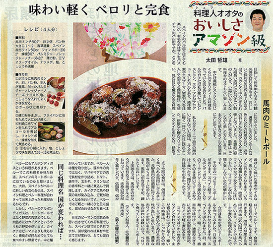 先日の信濃毎日新聞に、馬肉のミートボールのレシピが掲載されていましたので紹介いたします。
