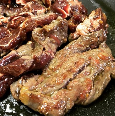 羊肉も鹿肉も厚切りの一枚肉を焼き上げたものはステーキだ。