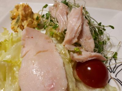 先に、スズキヤ流のレシピで鶏ハムを作っておきます。↓