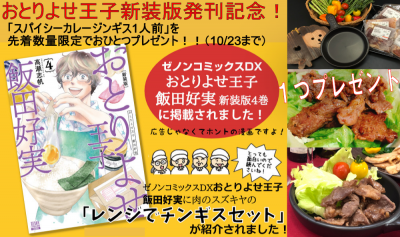 おとりよせ王子新装版発刊記念!!「スパイシーカレージンギス1人前」を 先着数量限定プレゼント!!(10/23まで)