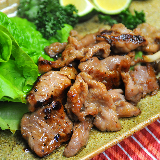 上質な鶏肉・豚肉に焼味噌にんにく醤油のジンギスカンのタレをからませています。