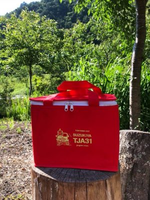 くじ引きの景品に早速ジンギスバッグの赤が入っています。
