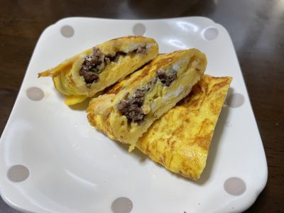 翌朝は、少し取り置きしておいた鹿挽き肉を、