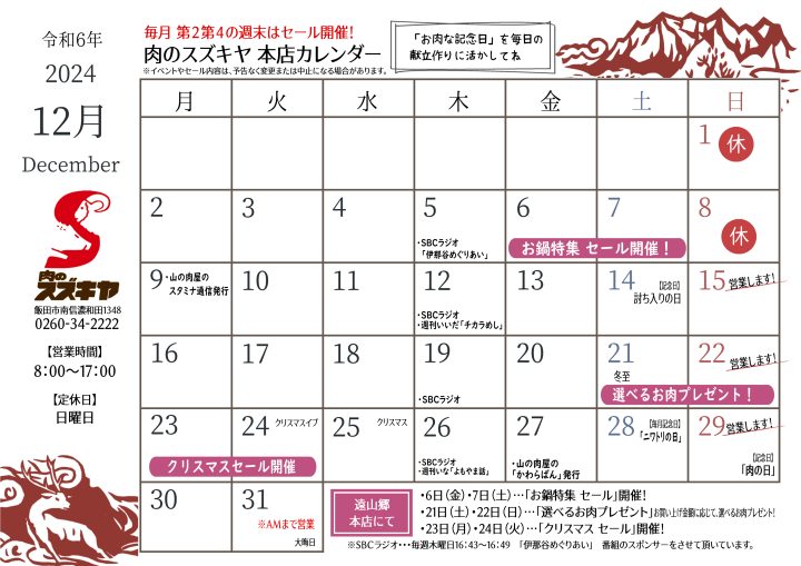 本店では毎月第2と第4の週末はお得なイベントを開催中!