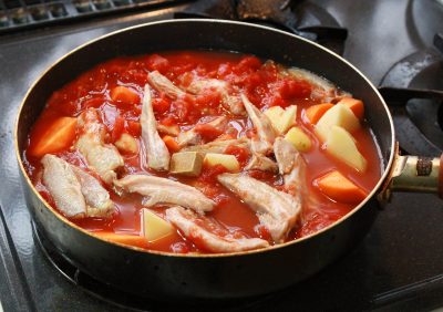 骨付きのスティックとりじんを使った「スティックとりじんのトマト煮」
