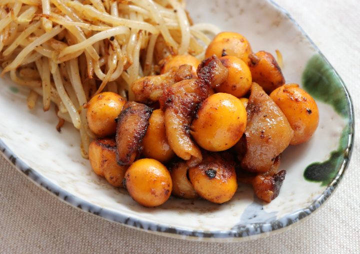 鶏皮からジュワ~と出る脂の旨味がキンカンと絡まってクセになる味わいに。