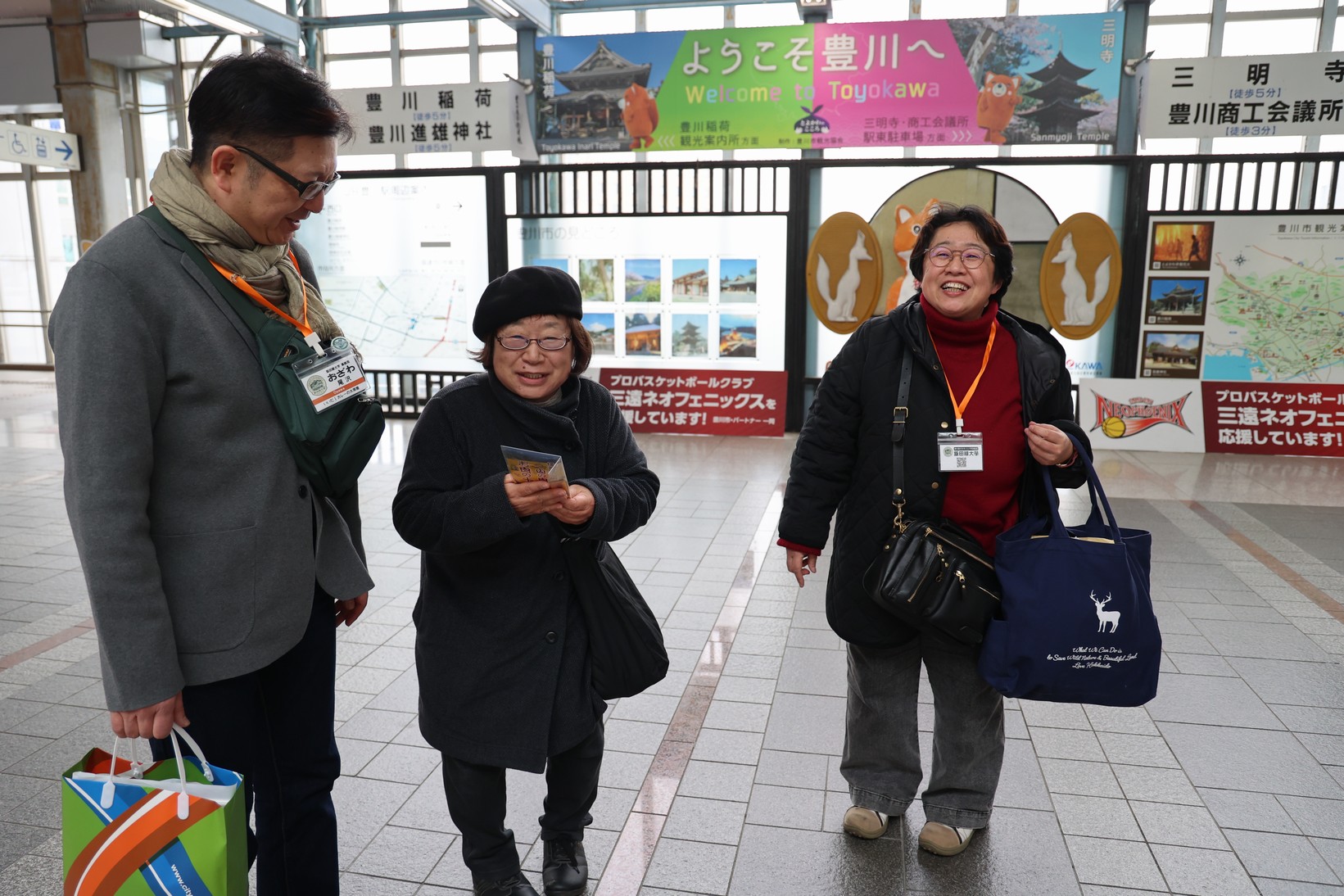 豊川駅の改札口で待ってくれていたのは、尾澤さんの御親戚だという小池しのぶさん。先祖は下條村の出身なのだそう。「しのぶさんがどうしてここに!?」と驚く尾澤さんが面白かったです。