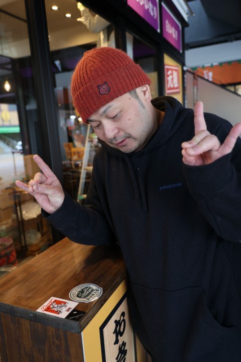 おきつね本舗はバンズのかわりに油揚げを使った「おきつねバーガー」や、葉ワサビをトッピングしたいなり寿司などが人気のお店。油揚げは信州飯田の信濃雪を使っているとのことで、社長の藤井雅大さんが「これが証拠だよ」と伝票まで見せてくださいました。