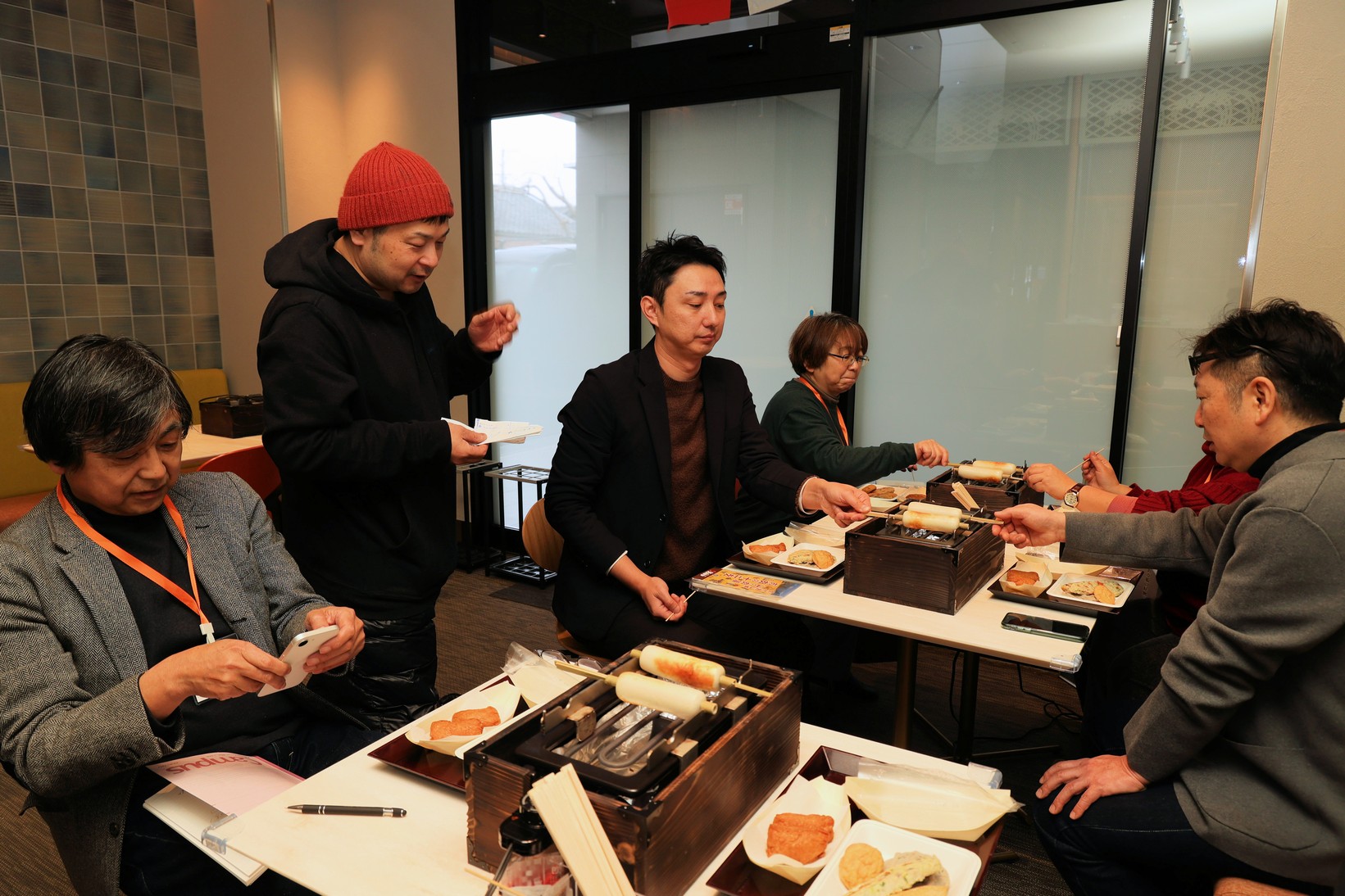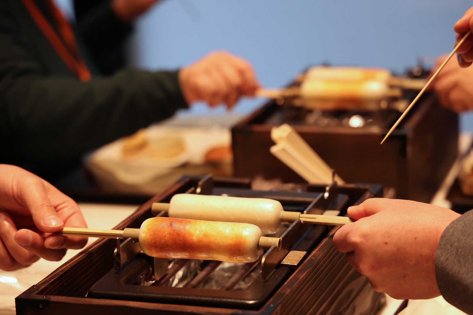 2月22日の縁日にあわせて本格オープンを控えているという飲食コーナーで、電熱コンロでちくわなどを焼いて食べるランチミーティングを体験させていただきました。やはり焼きたての味は格別です。