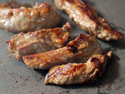 柔らかい赤身肉を味噌ベースのたれで味付けしました。