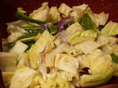 玉ねぎ半分は、味も馴染ませたいので一緒に焼いています。