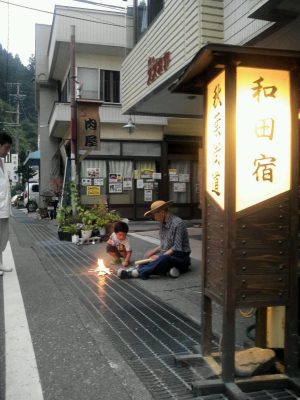 遠山郷の山の肉屋の鈴木家では、毎年、迎え火を焚いています。