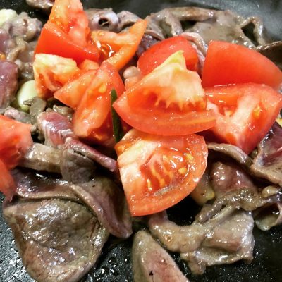 みずみずしいトマトも一緒に炒めます。