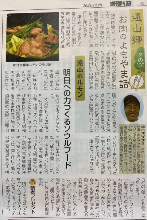 焼いても煮ても美味しい遠山谷のやみつきモツ、遠山ホルモンの原点、